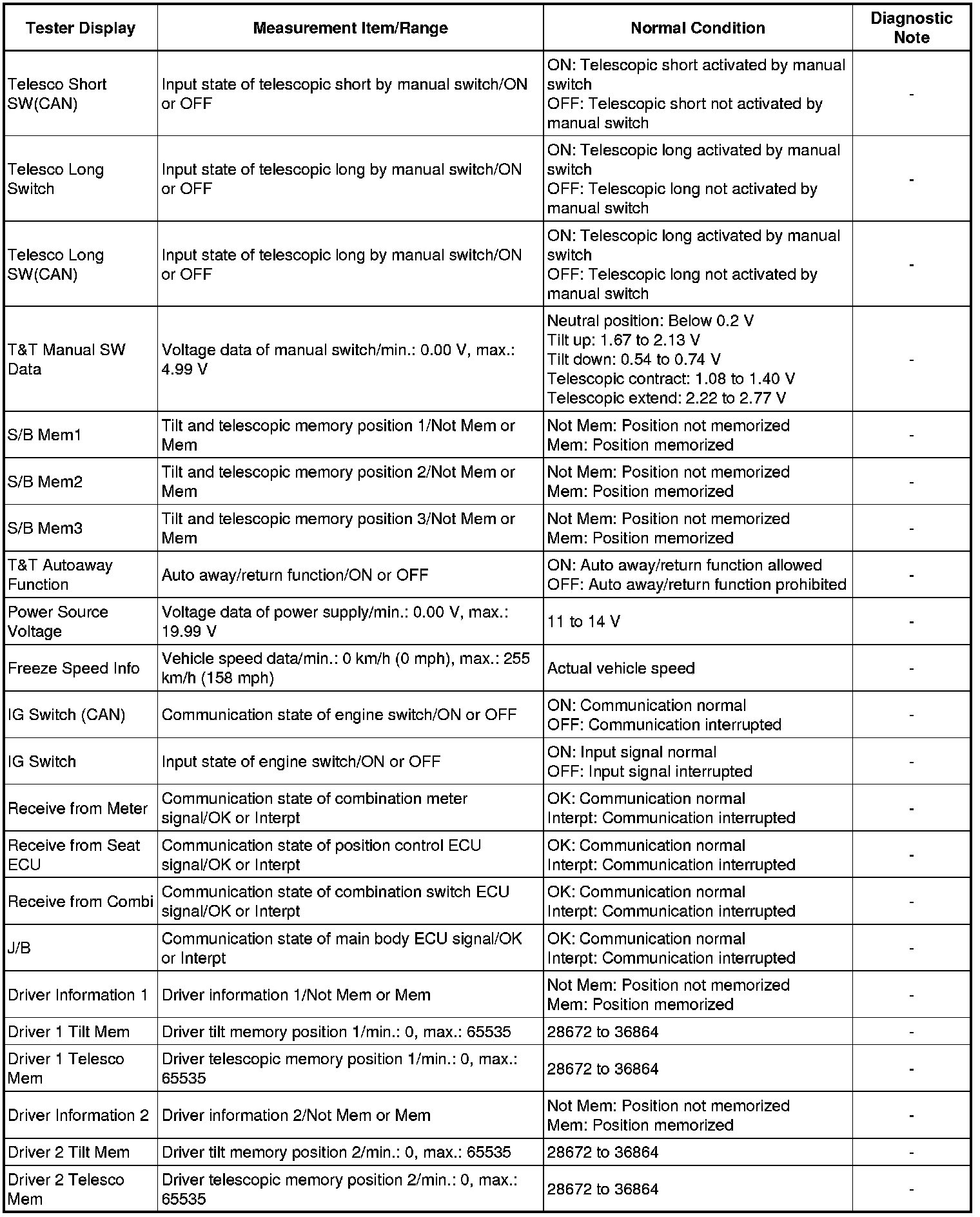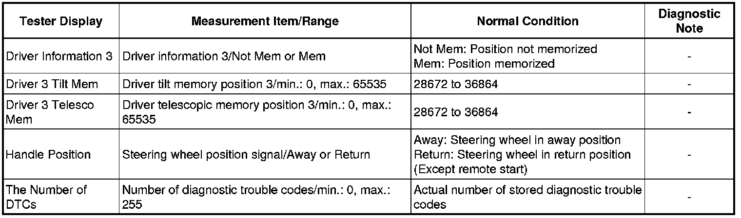 (d) Enter the following menus: Body Electrical / Tilt & Telescopic / Data List.
