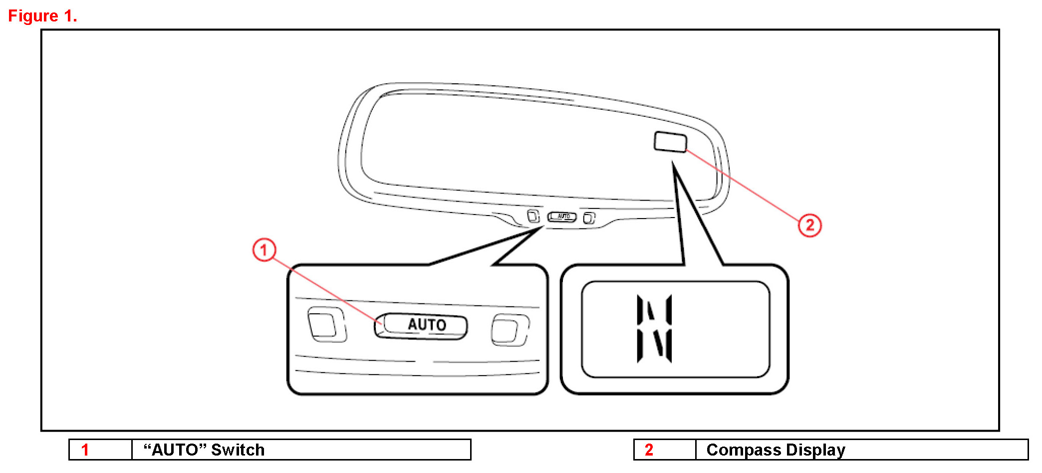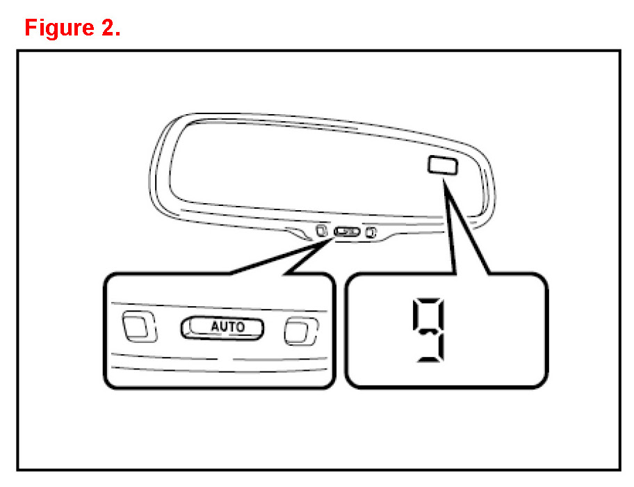 1. Cycle the ignition switch to the "IG-ON" position and hold the "AUTO" switch for 6 seconds until the zone number appears on the compass display.