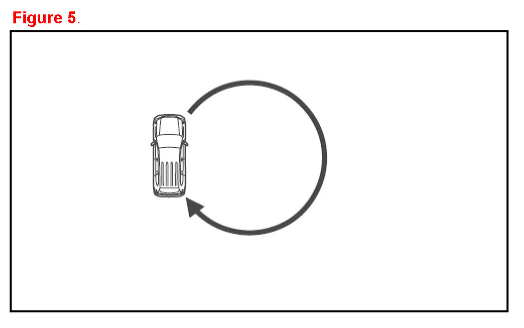 4. Drive the vehicle slowly at 8 km/h (5 mph), or less, in a circle until the direction is displayed. If there is NOT enough space to drive in a circle, drive around the block until the direction is displayed.