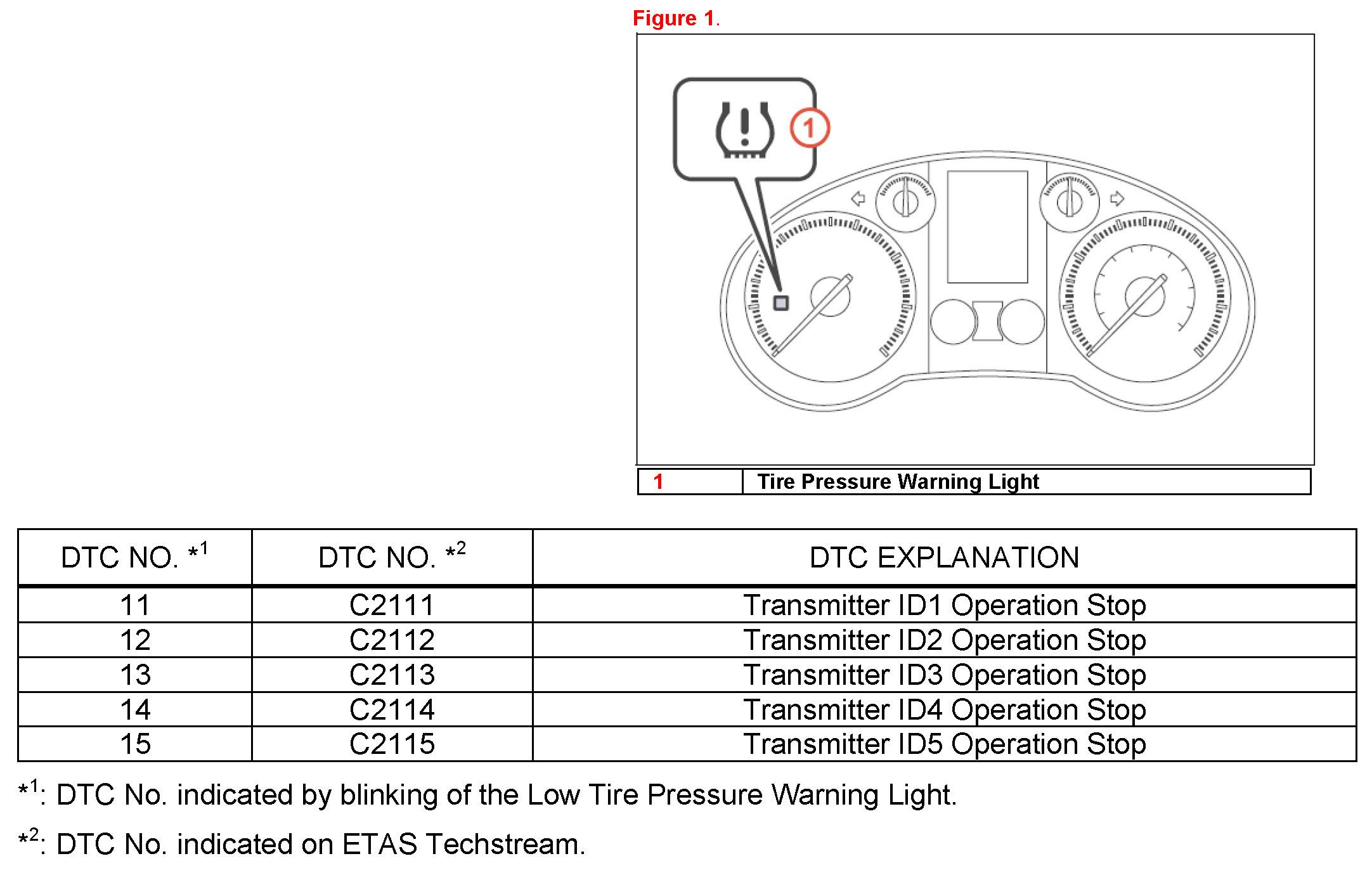 - The Diagnostic Trouble Codes (DTCs) listed may be stored in the TPWS ECU until the tire pressure warning valves/sensors are activated.