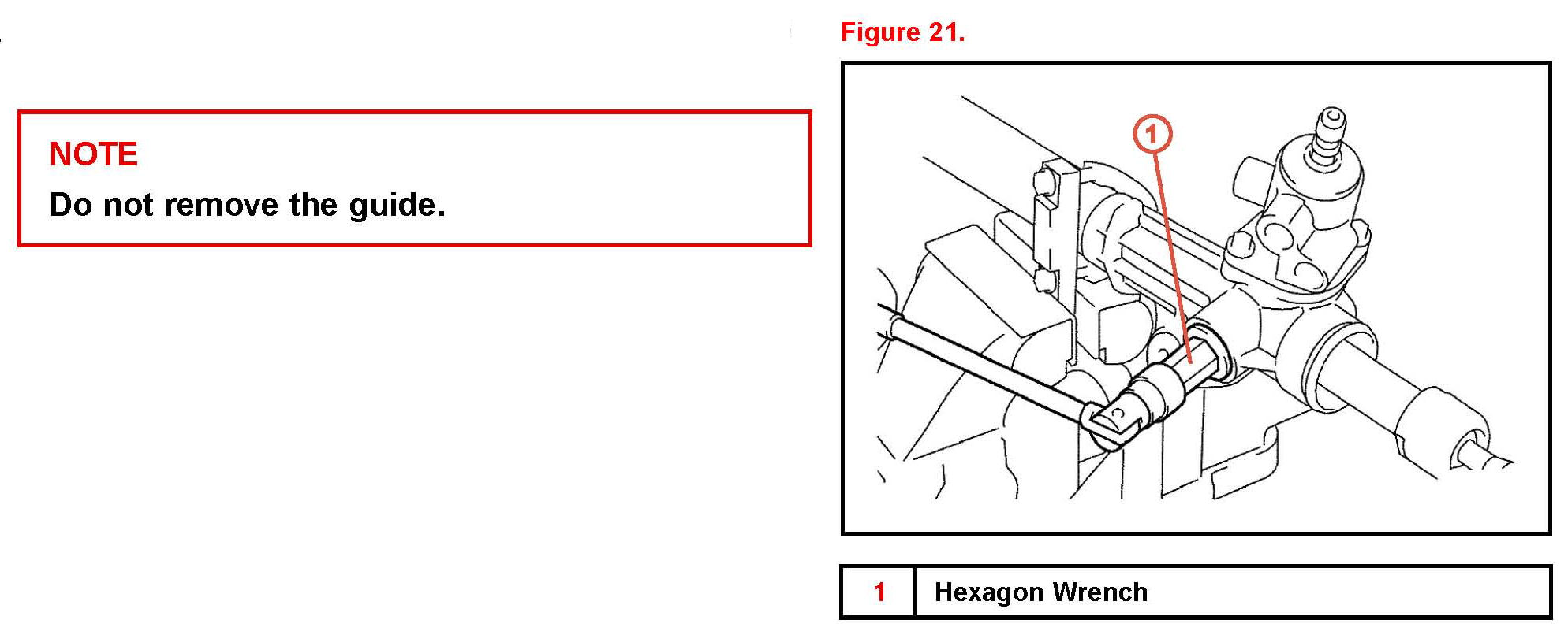 13. Using the hexagon wrench tighten the rack guide spring cap until the matchmarks line up.