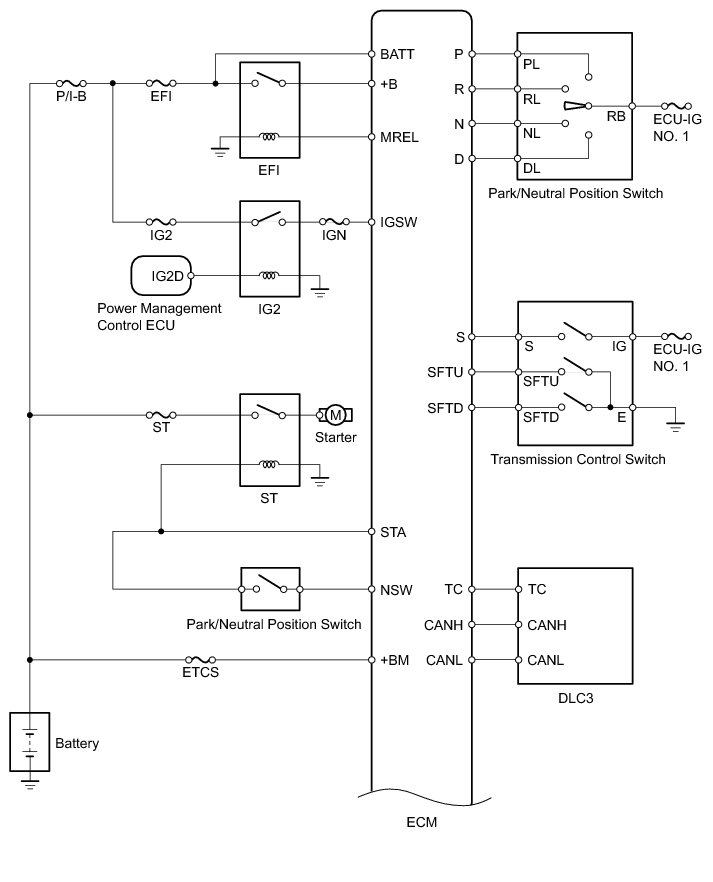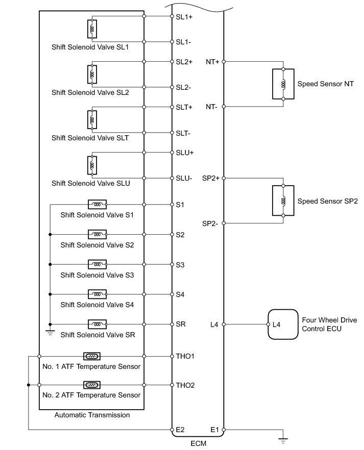 The configuration of the electronic control system for the A760F automatic transmission is as shown in the following chart.