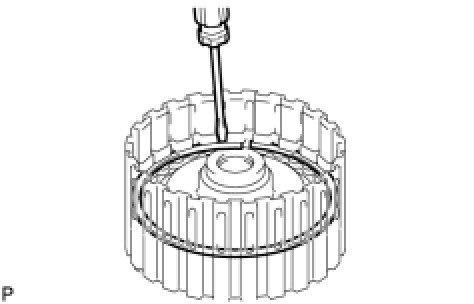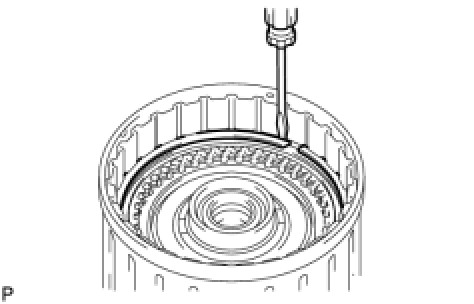 (b) Using a screwdriver, install the snap ring to the clutch drum.