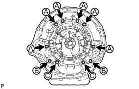 (b) Apply adhesive to the threads of the 4 bolts labeled B and C.