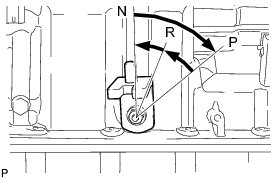 (b) Move the manual valve lever to the P position and confirm that the planetary ring gear is correctly locked by the lock pawl.