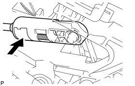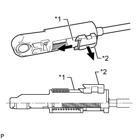 (e) Turn the socket of the transmission control cable 180° counterclockwise. While holding the socket in place, push in the lock piece until the lock piece clicks twice.