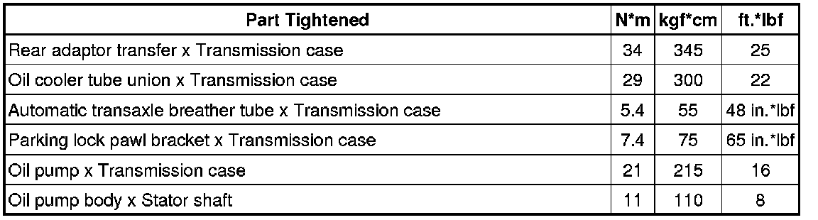 SPECIFICATIONS: A760F AUTOMATIC TRANSMISSION / TRANSAXLE: TORQUE SPECIFICATIONS
