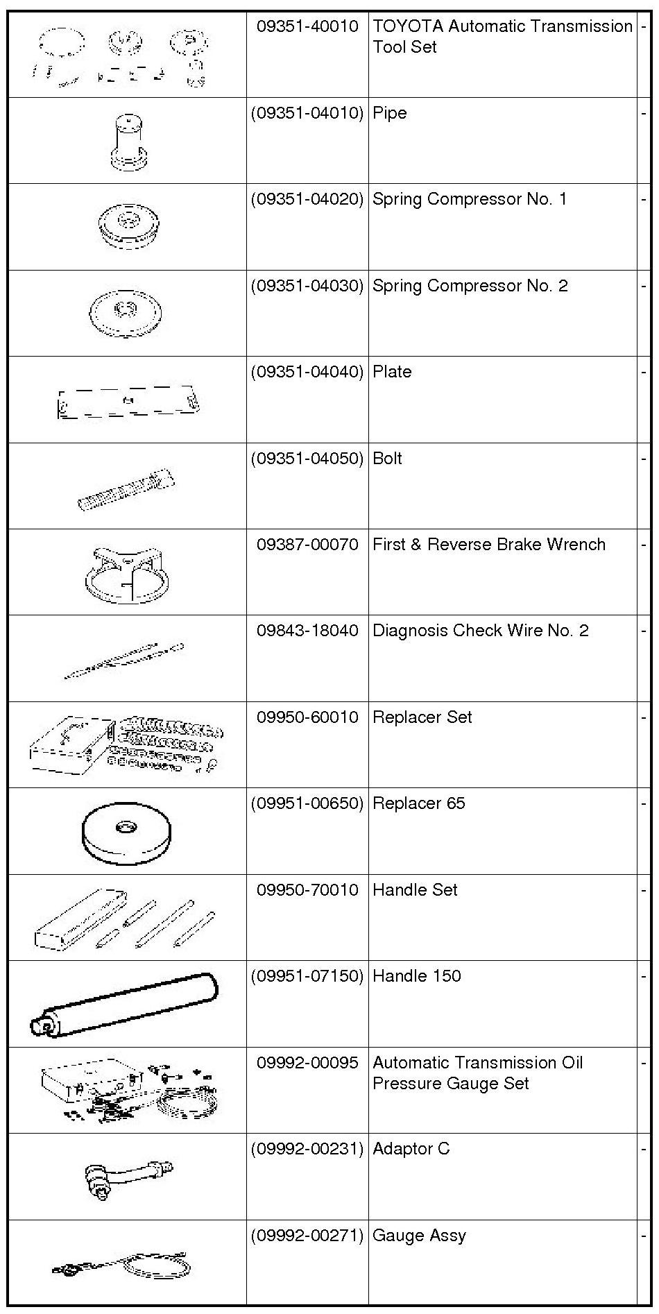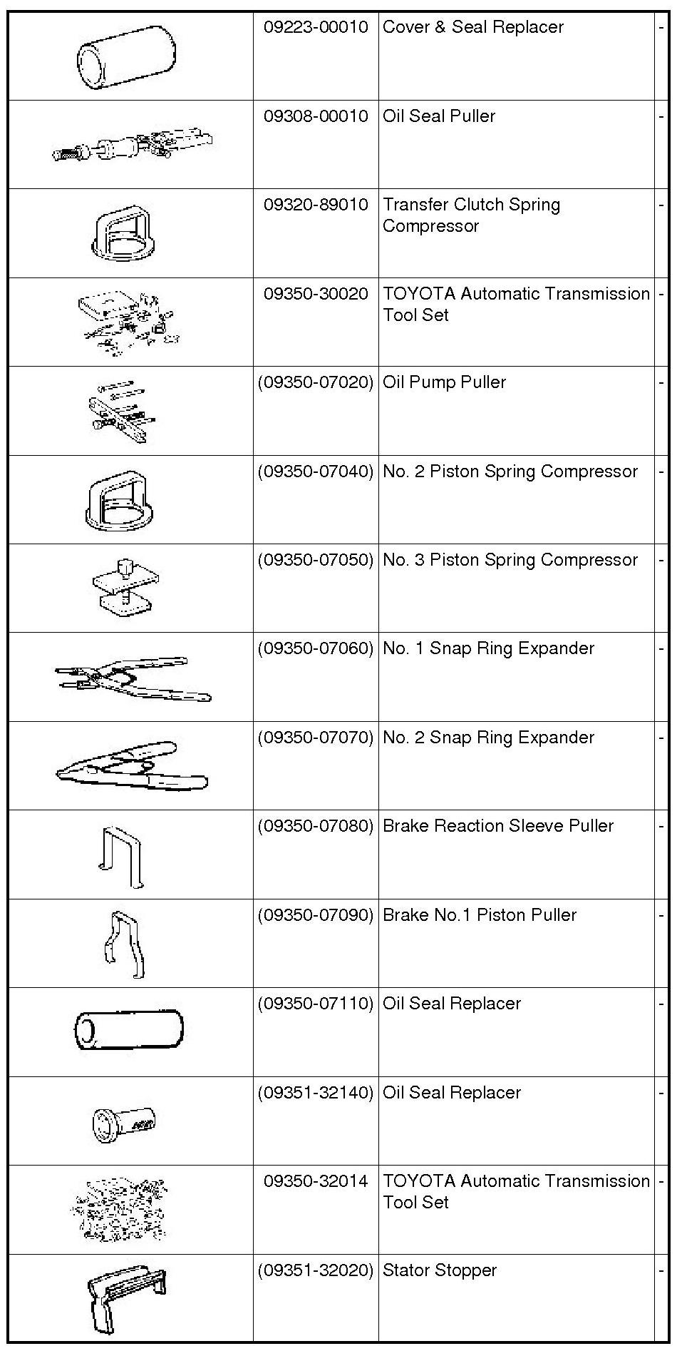 PREPARATION: A760F AUTOMATIC TRANSMISSION / TRANSAXLE: SST