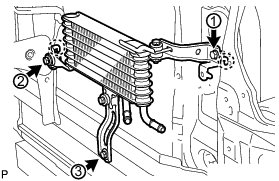 (b) Align the transmission oil cooler with the transmission oil thermostat and assemble them with the 3 bolts.