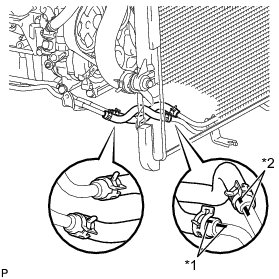 (b) Connect the 2 hoses to the radiator and No. 3 oil cooler tube to install them.