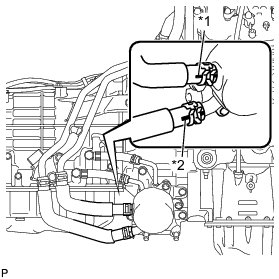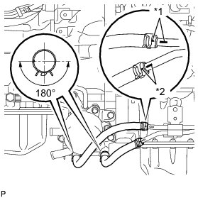 (b) Connect the 2 hoses to the No. 2 oil cooler tube to install them, and then pass the 2 hoses through the No. 1 flexible hose clamp and close the clamp.