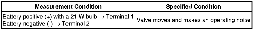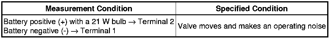 If the result is not as specified, replace the solenoid valve.