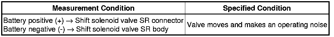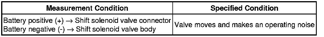 (b) Apply 12 V battery voltage to the shift solenoid valve and check that the valve moves and makes an operating noise.