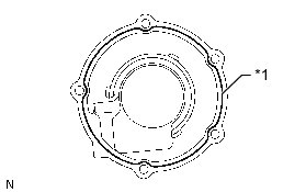 If the removed bearing retainer is reused, be sure to perform the following before reinstalling it: 1) using a knife, cut off any old seal packing on the retainer contact surface, 2) clean off any remaining old seal packing from the retainer contact surface, and 3) reapply seal packing to the retainer.