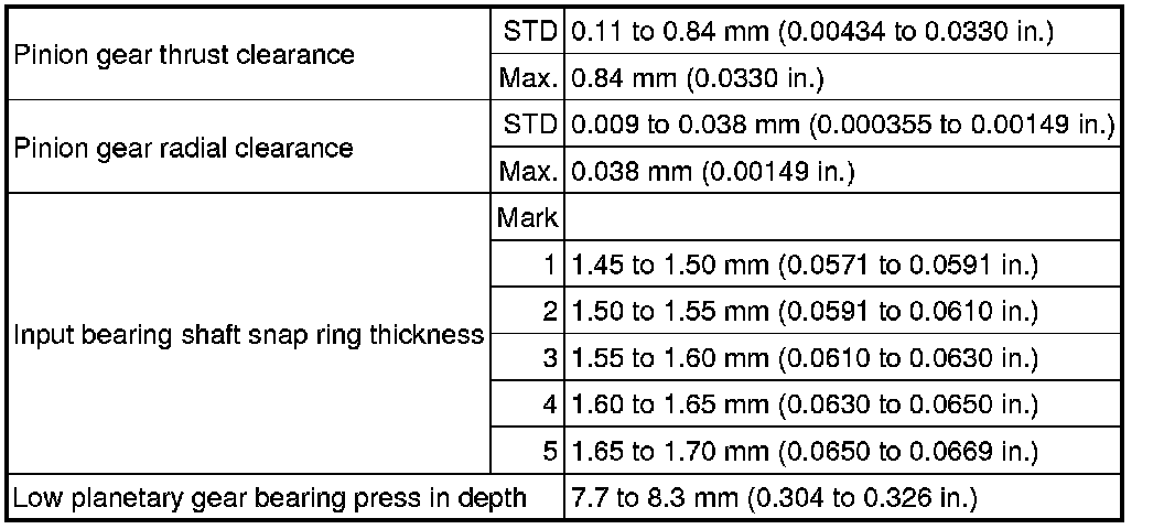 SPECIFICATIONS: VF4BM TRANSFER / 4WD / AWD: SERVICE DATA