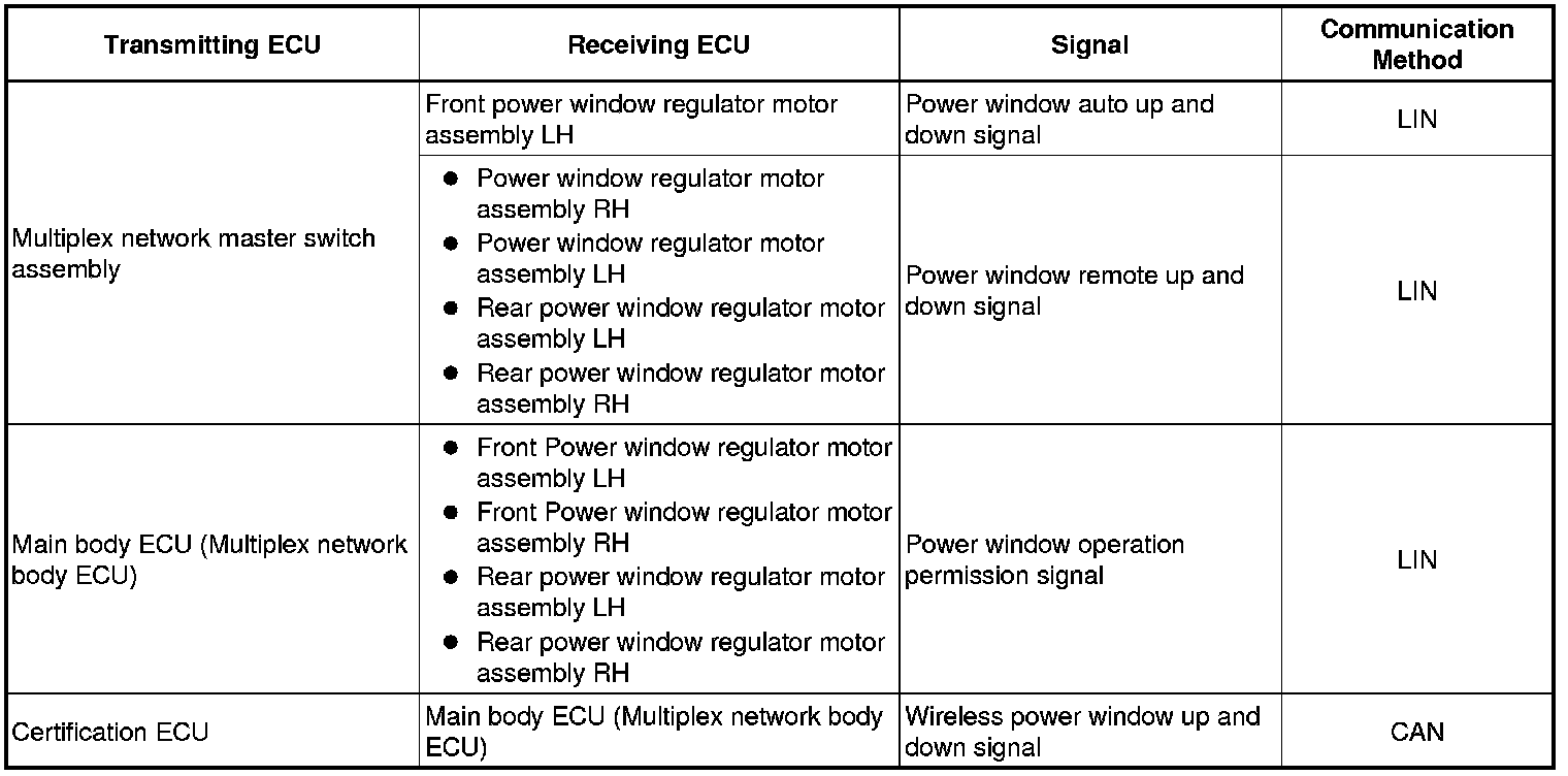 WINDOW / GLASS: POWER WINDOW CONTROL SYSTEM: SYSTEM DIAGRAM
