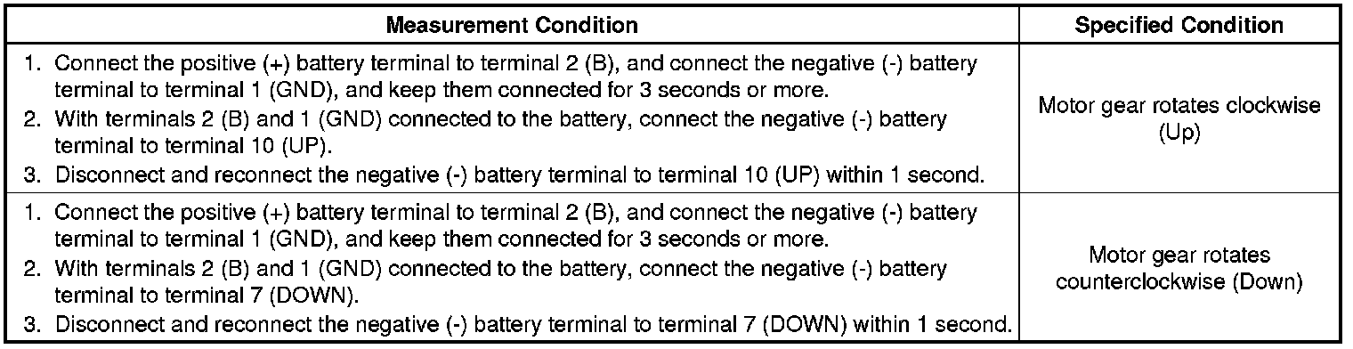 WINDOW / GLASS: POWER WINDOW REGULATOR MOTOR (for Rear Door): INSPECTION