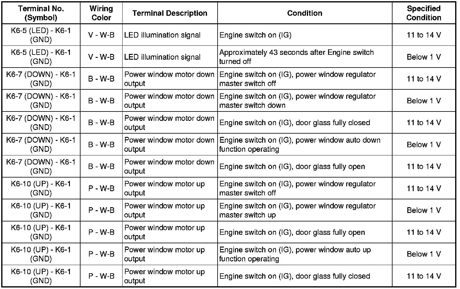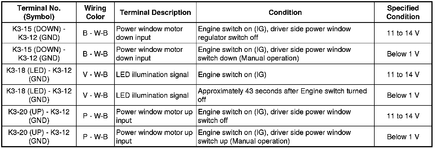 (c) Reconnect the K6 power window regulator motor connector.