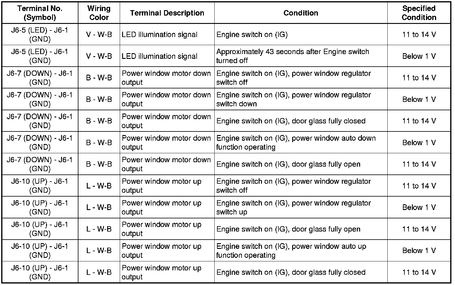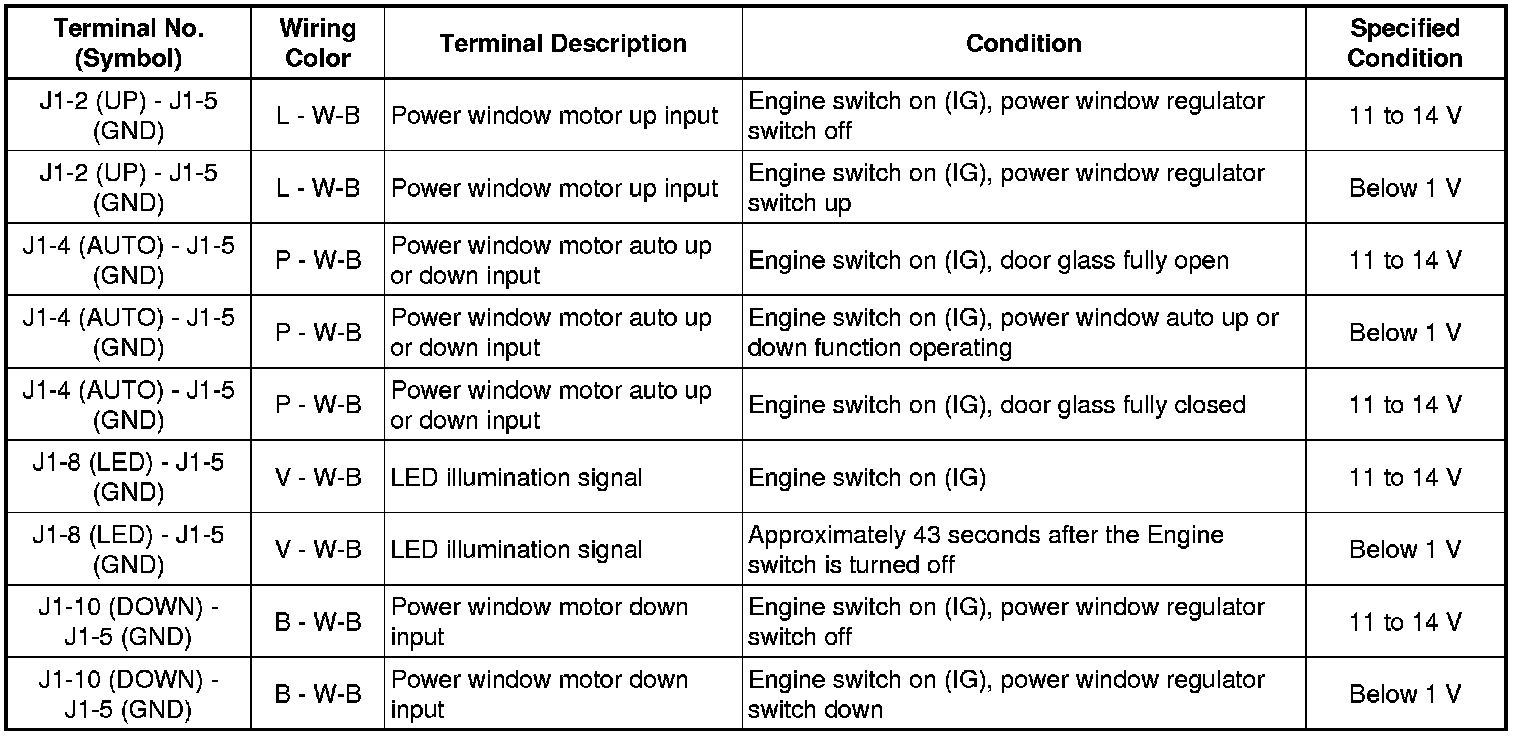 (a) Disconnect the J1 power window regulator switch connector.