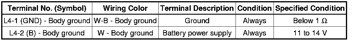 If the result is not as specified, there may be a malfunction in the wire harness side.