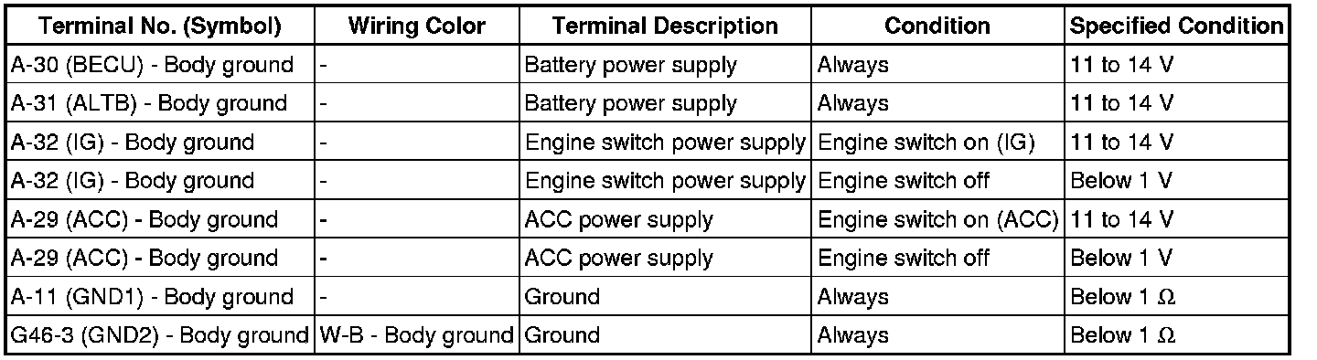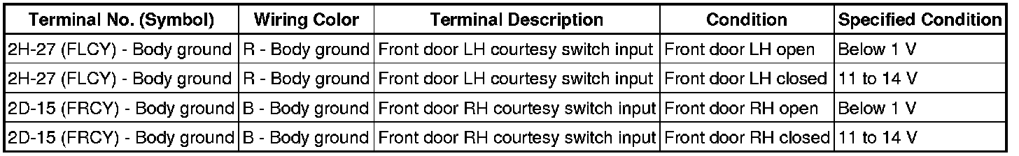 If the result is not as specified, the main body ECU (multiplex network body ECU) or driver side junction block assembly may have a malfunction.