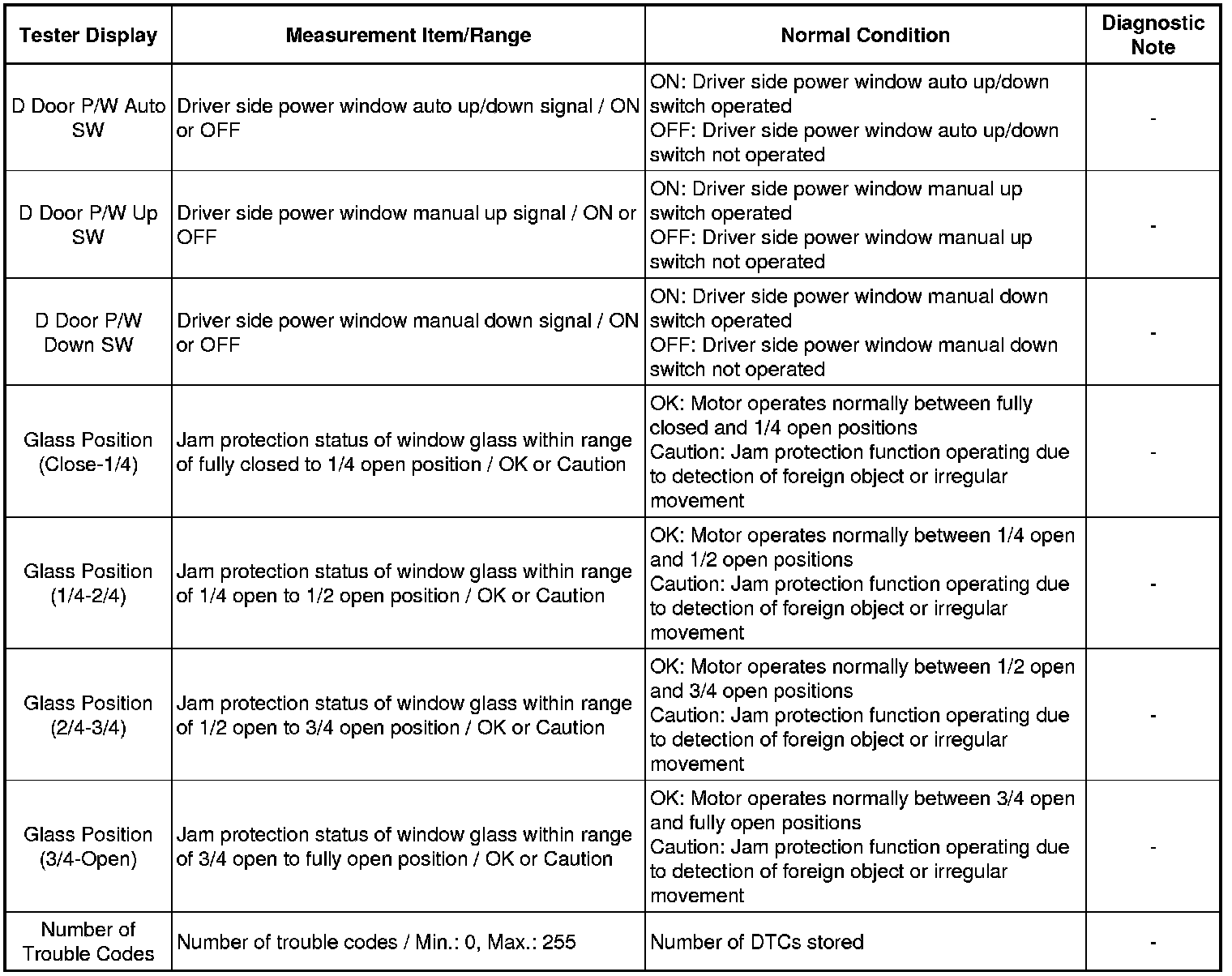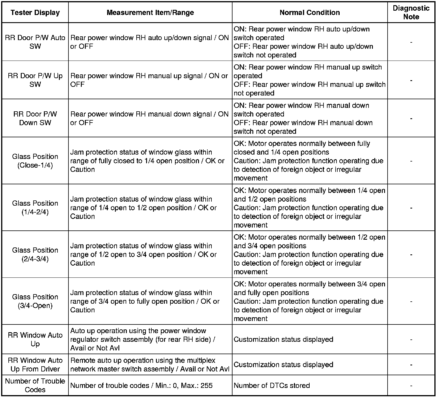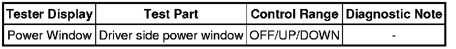 WINDOW / GLASS: POWER WINDOW CONTROL SYSTEM: DATA LIST / ACTIVE TEST