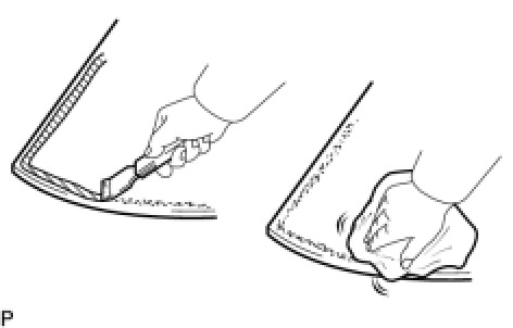 (1) On the contact surface of the vehicle body, use a knife to cut away excess adhesive as shown in the illustration.