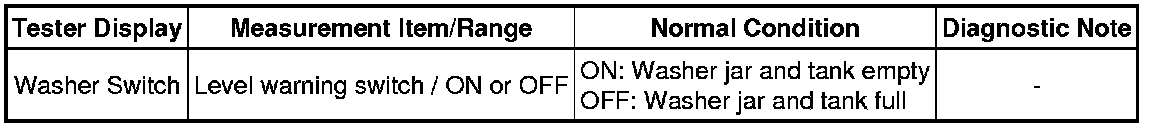 WIPER / WASHER: WIPER AND WASHER SYSTEM: Washer Fluid Level Warning Switch Circuit