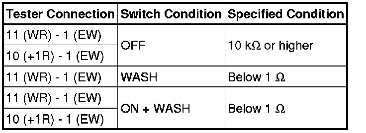 If the result is not as specified, replace the windshield wiper switch assembly.