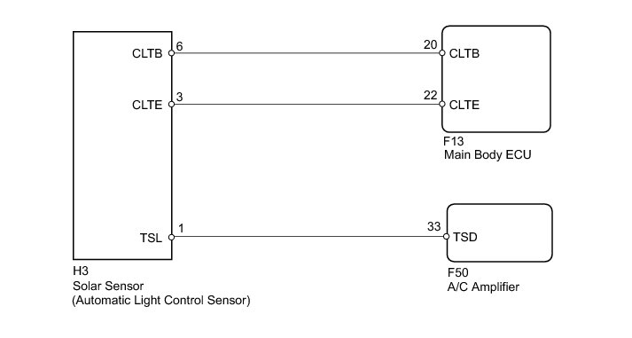 5. CHECK HARNESS AND CONNECTOR (MAIN BODY ECU - SOLAR SENSOR)
