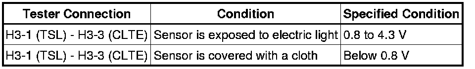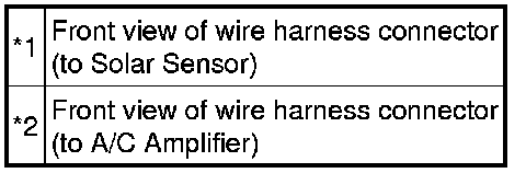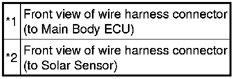* The connection procedure for using a digital tester such as a TOYOTA electrical tester is shown above. When using an analog tester, connect the negative (-) lead to terminal 2 and the positive (+) lead to terminal 6 of the solar sensor.