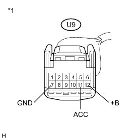 (a) Disconnect the U9 multi-media interface ECU connector.