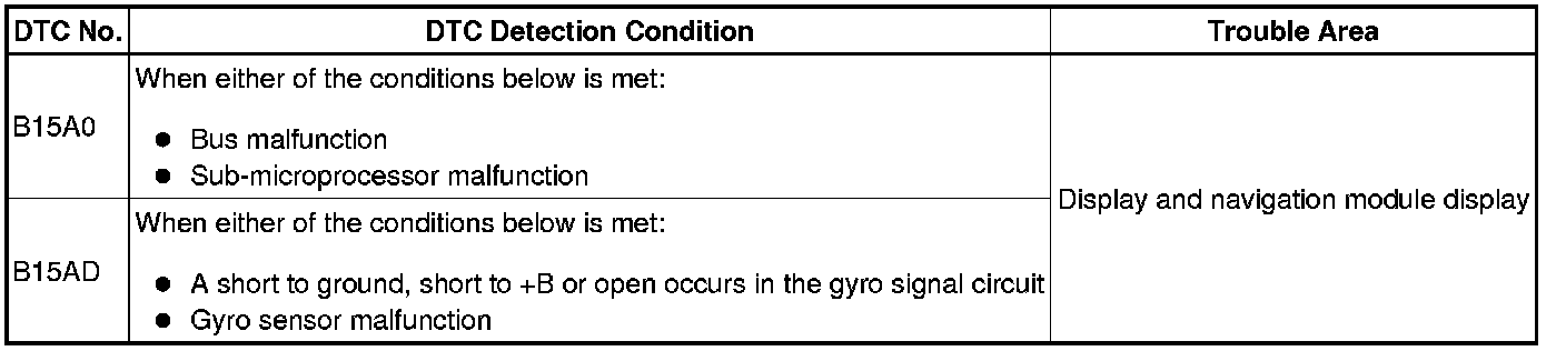 These DTCs are stored when a malfunction occurs in the display and navigation module display.
