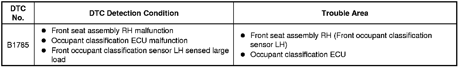DTC B1785 is stored when the occupant classification ECU receives a collision detection signal sent by the front occupant classification sensor LH if an accident occurs.