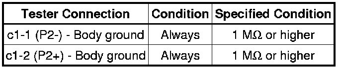 Never connect the tester to the front passenger airbag assembly (front passenger side squib 2nd step) for measurement, as this may lead to a serious injury due to airbag deployment.
