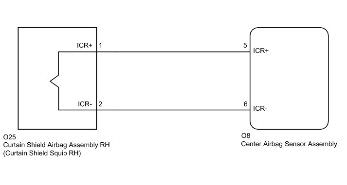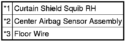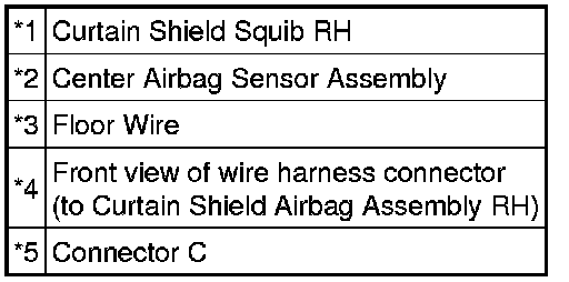 The curtain shield squib RH circuit consists of the center airbag sensor assembly and curtain shield airbag assembly RH.