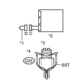 Never connect the tester to the curtain shield airbag assembly RH (curtain shield squib RH) for measurement, as this may lead to a serious injury due to airbag deployment.