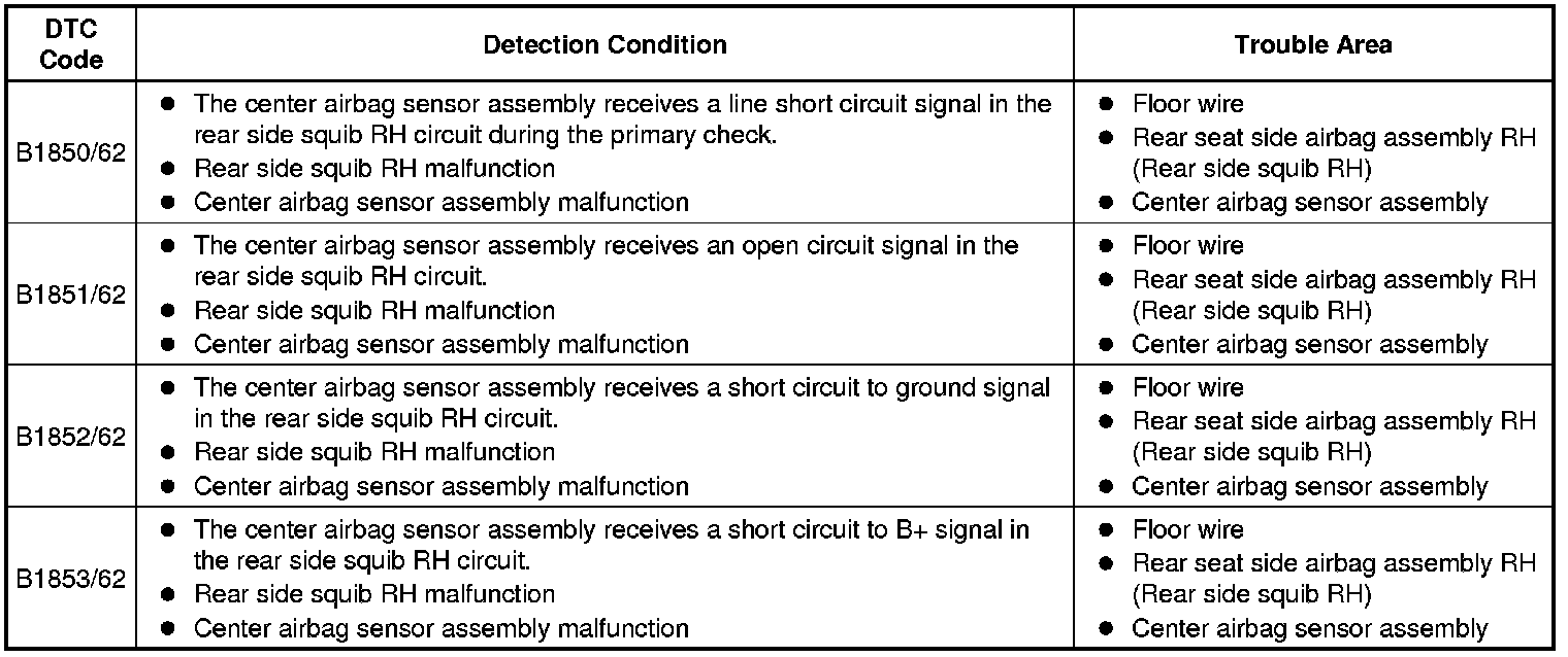 SUPPLEMENTAL RESTRAINT SYSTEMS: AIRBAG SYSTEM: B1850/62-B1853/62: Short in Rear Side Squib RH Circuit