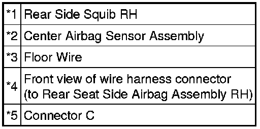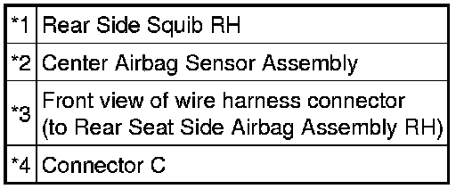 The rear side squib RH circuit consists of the center airbag sensor assembly and rear seat side airbag assembly RH.