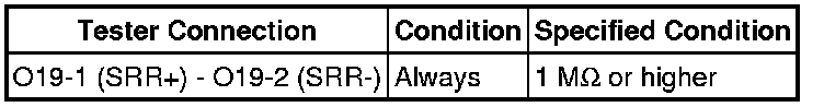 Never connect the tester to the rear seat side airbag assembly RH (rear side squib RH) for measurement, as this may lead to a serious injury due to airbag deployment.
