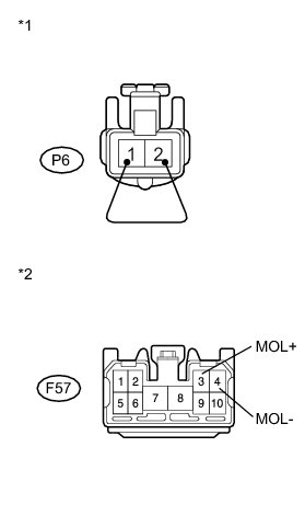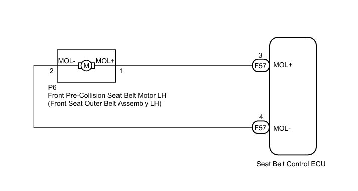 (d) Using a service wire, connect MOL+ and MOL- of the connector on the front seat outer belt assembly LH.