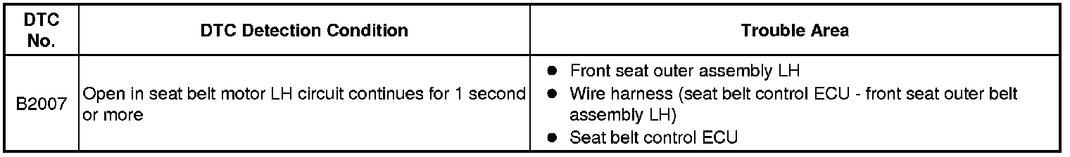 B2007 - Open in Seat Belt Motor LH Circuit