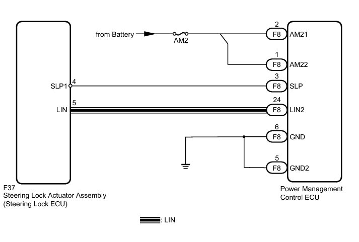 5. CHECK HARNESS AND CONNECTOR (POWER MANAGEMENT CONTROL ECU - STEERING LOCK ECU)