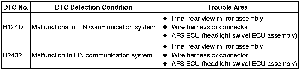 NETWORKING: LIN COMMUNICATION SYSTEM: B124D, B2432: Lost Communication with AFS LIN
