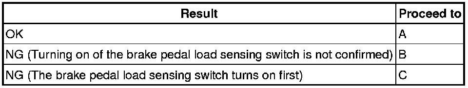 First the stop light switch should turn ON, and then the brake pedal load sensing switch should turn ON.