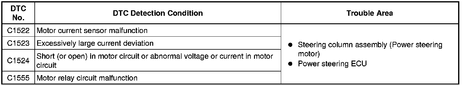 POWER ASSIST SYSTEMS: POWER STEERING SYSTEM: C1522-C1555: Motor Circuit Malfunction