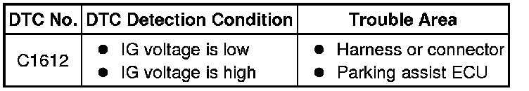 This DTC is stored if the parking assist ECU judges as a result of its self check that the voltage received by terminal IG is low or high.
