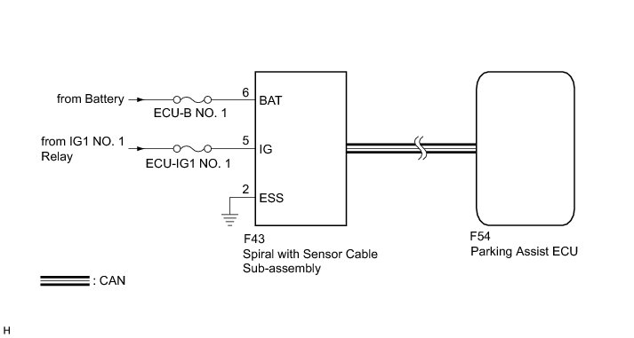 This DTC is stored if the parking assist ECU receives a signal via CAN communication from the spiral with sensor cable sub-assembly that indicates a power supply system problem.