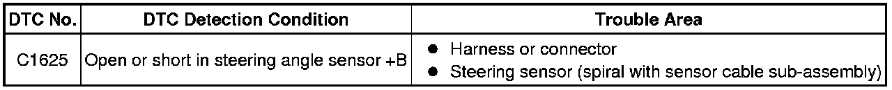 C1625 - Open or Short in Steering Angle Sensor +B