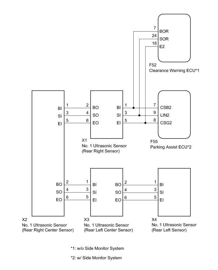 (a) Disconnect the X1 and X2 connectors from the No. 1 ultrasonic sensors.